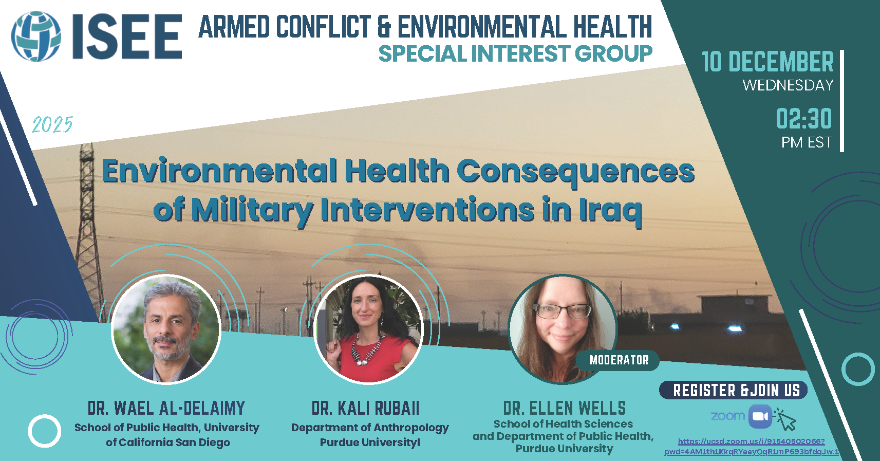 - Environmental Health Consequences of Military Interventions in Iraq: December 10, 2025, 2:30 PM EST (find time in your location here)